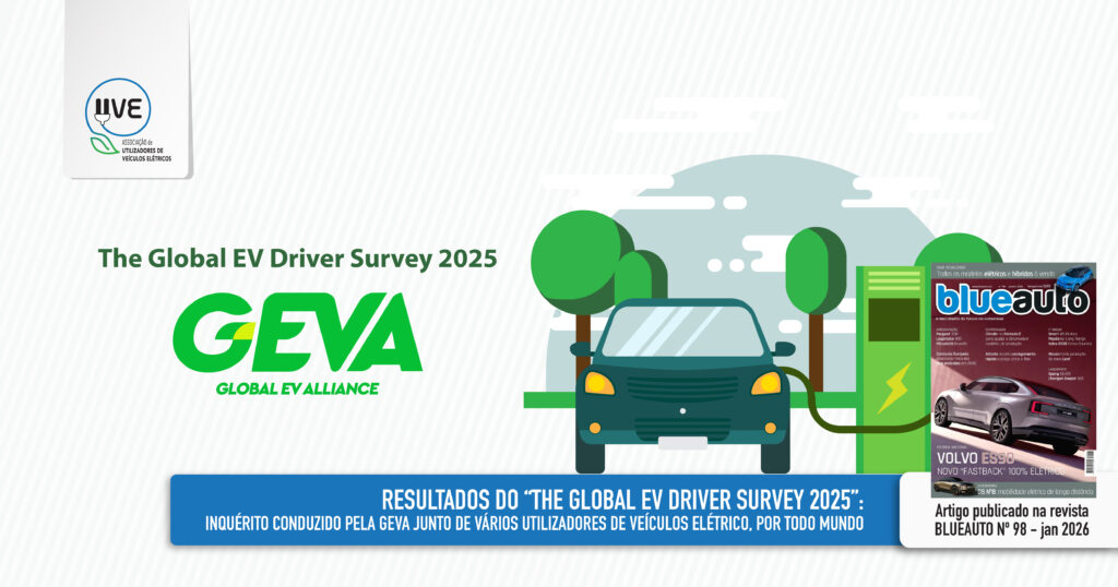 Artigo da UVE – Associação de utilizadores de Veículos Elétricos, publicado na edição nº 98 da revista Blueauto de janeiro de 2026, sobre os resultados do inquérito realizado pela Global EV Alliance (GEVA).