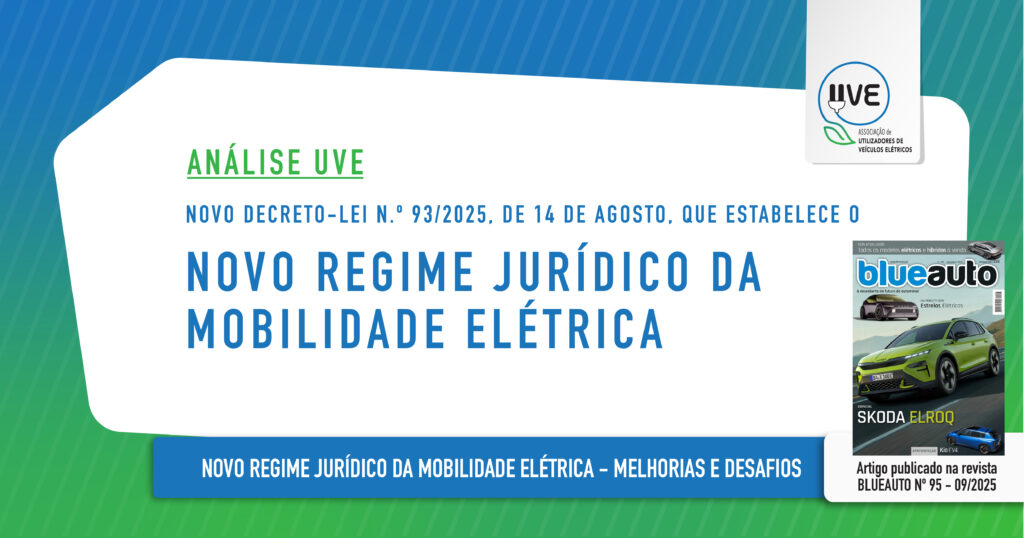 Análise da UVE – Associação de Utilizadores de Veículos Elétricos, ao novo Decreto-Lei n.º 93/2025, de 14 de agosto, que estabelece o novo Regime Jurídico da Mobilidade Elétrica (RJME), publicado na edição n.º 95 da Revista Blueauto, de setembro de 2025.