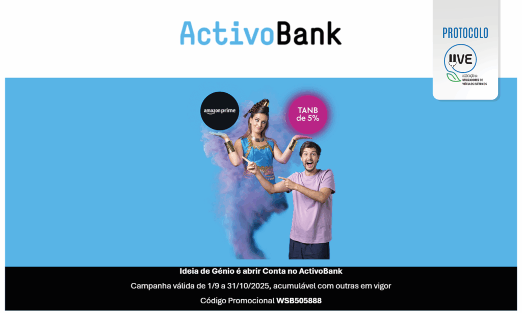 A UVE – Associação de Utilizadores de Veículos Elétricos estabeleceu um novo protocolo em 2021 com a ActivoBank, com condições vantajosas para os Associado UVE. As condições do Protocolo UVE / ActivoBank foram atualizadas e encontram-se válidas até 31 de outubro de 2025.