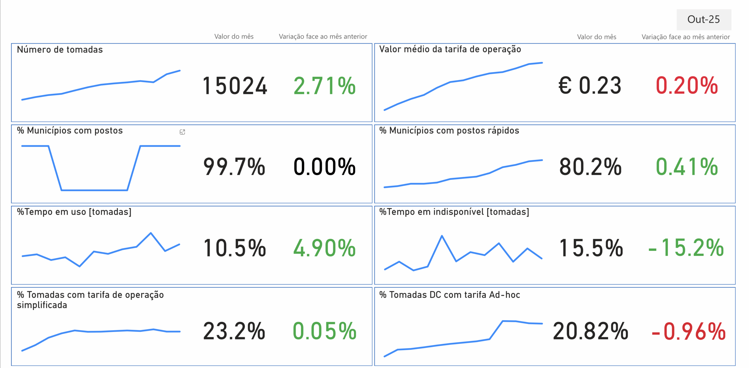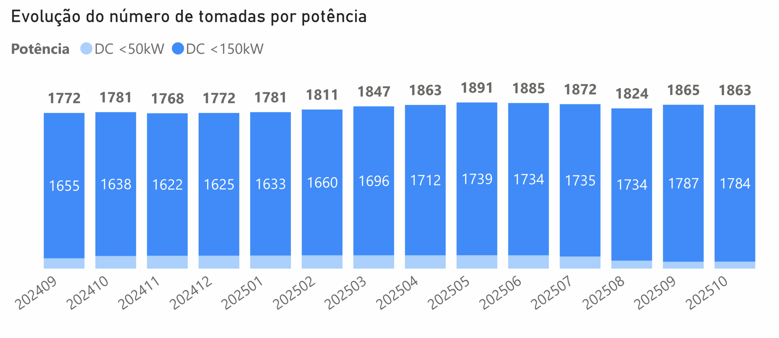 Em outubro 2025, aproximadamente 23% das tomadas da rede pública, apresentam tarifas de operação ao kWh, o que representa um aumento de 99% quando comparado com o mesmo mês do ano passado. Contudo, nos últimos meses este crescimento tem sido incipiente, tendo sido de apenas 3% no último mês.