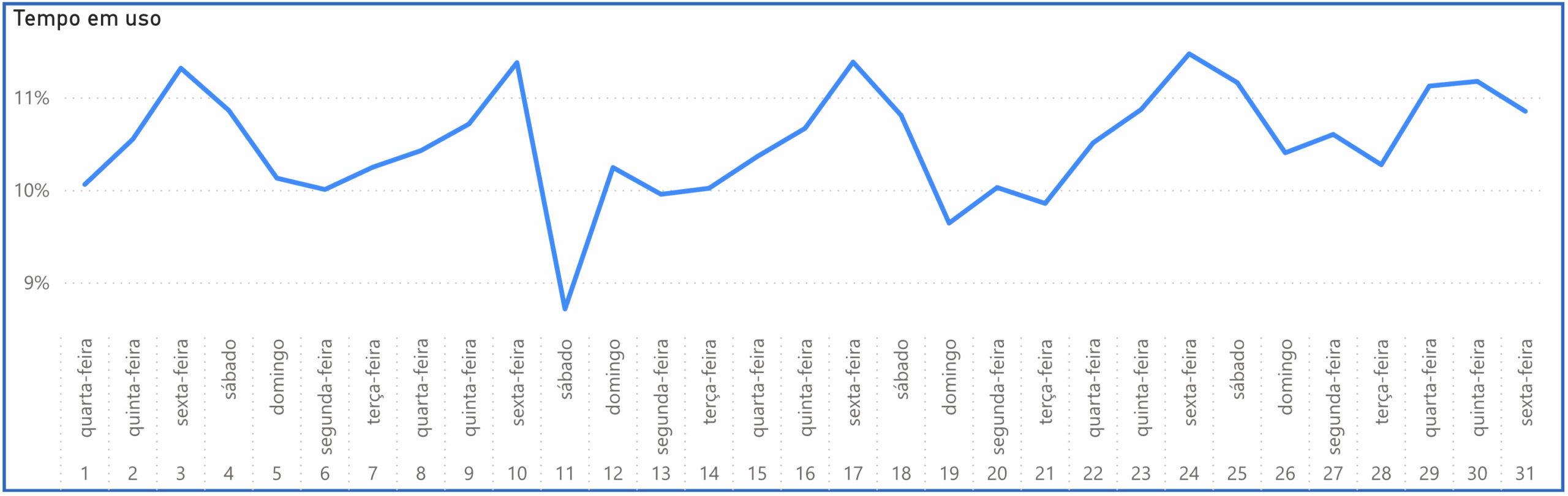 No mês de outubro, os dias com maiores taxas de utilização da rede foram sistematicamente as sextas-feiras, com valores superiores a 11%.