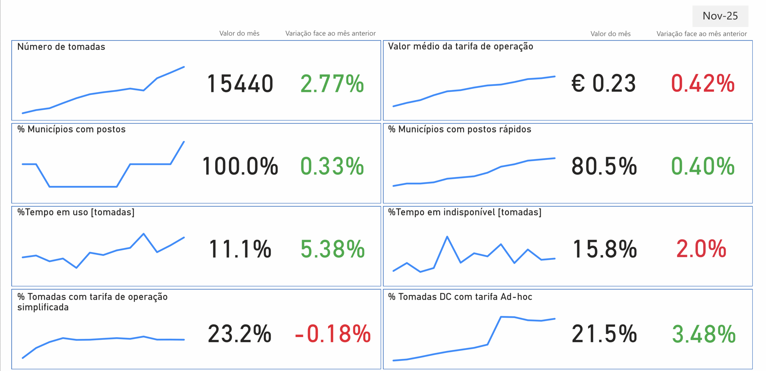 Informação disponível no Observatório da Mobilidade Elétrica, em Rede > Estado da Rede > Métricas