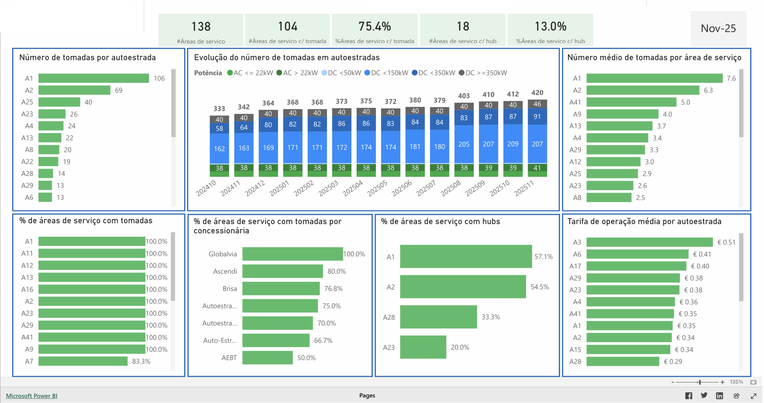 Informação disponível no Observatório da Mobilidade Elétrica, em Rede > Gerais > Autoestrada