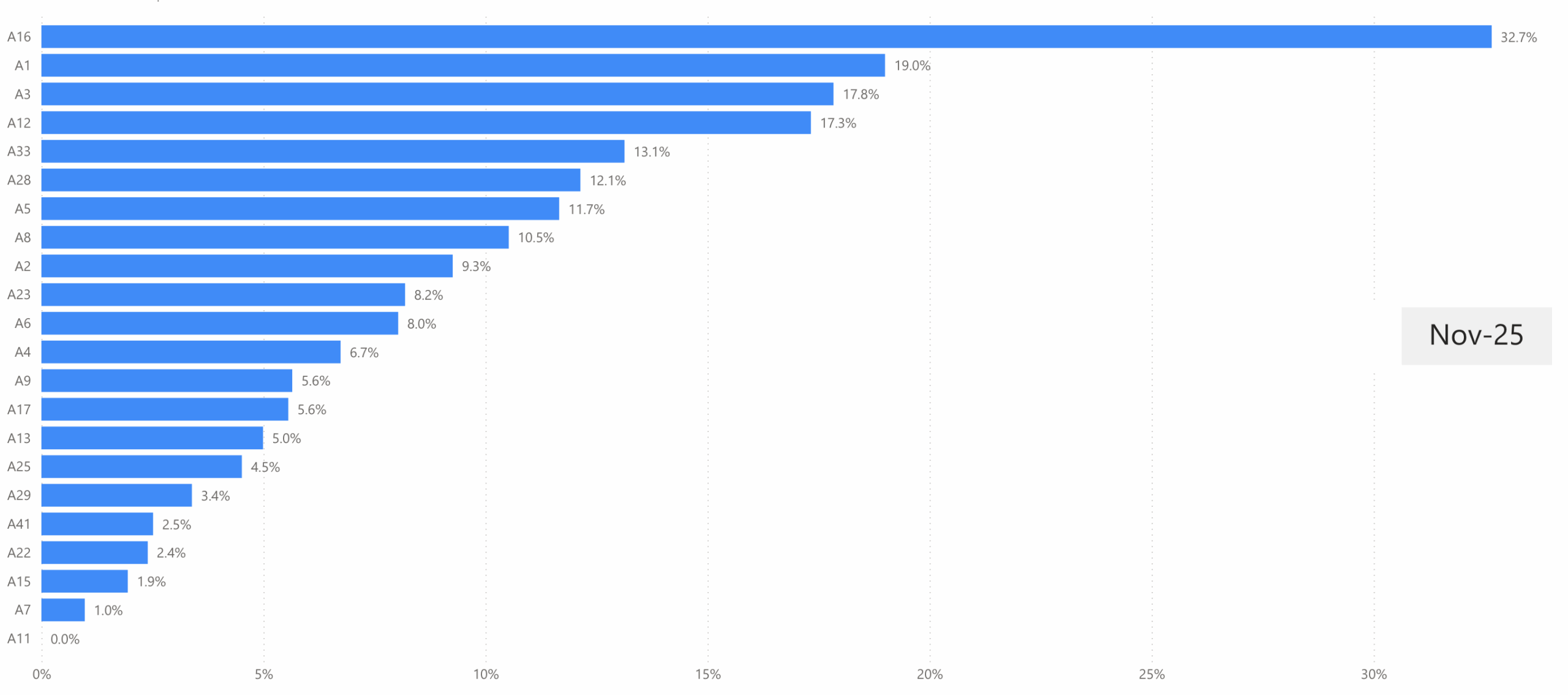 Em novembro 2025, aproximadamente 23% das tomadas da rede pública, apresentam tarifas de operação ao kWh, o que representa um aumento de 71% quando comparado com o mesmo mês do ano passado. Contudo, nos últimos meses este crescimento tem sido incipiente, tendo sido de apenas 3% no último mês. O cumprimento do AFIR, nomeadamente o pagamento em terminais TPA com as chamadas tarifas ad-hoc, ainda se encontra aquém do exigido: todas as tomadas com potências superiores a 50kW instaladas após maio de 2024 já deveriam apresentar esta solução de pagamento. No entanto, apenas 19,5% cumprem este requisito, isto é, -3,8 pontos percentuais do valor mais elevado verificado em julho 2025, que era de 23,3%. Esta é uma solução mais cómoda para o utilizador, mas, convém lembrar, que também é mais dispendiosa – em média, mais 0,07€/kWh, quando comparada com a solução de carregar com um cartão CEME.