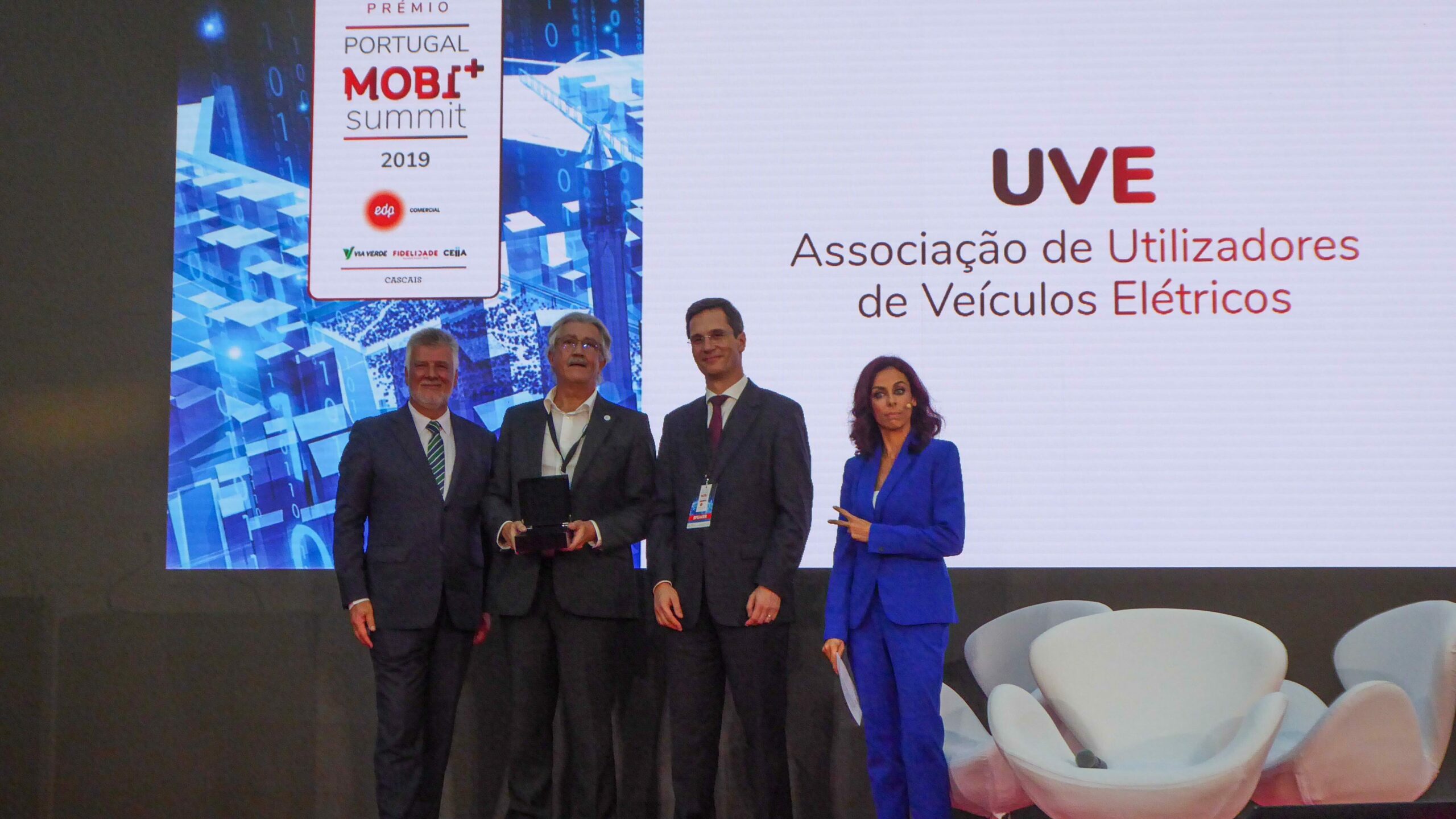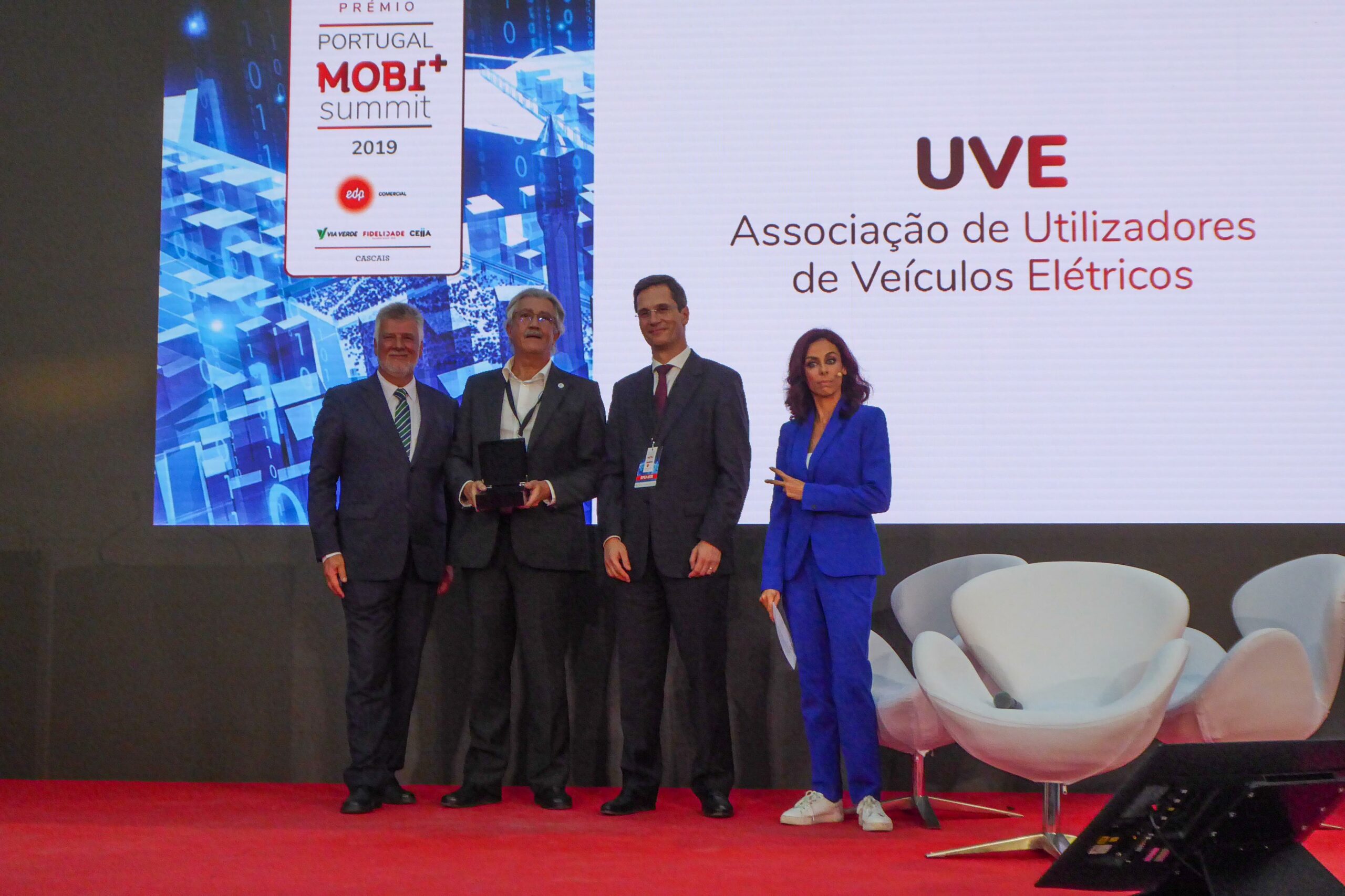 Atribuição do prémio MOBI+ à UVE por atividades desenvolvidas na divulgação da Mobilidade Elétrica. Portugal Mobi Summit, em Carcavelos, em outubro de 2019.