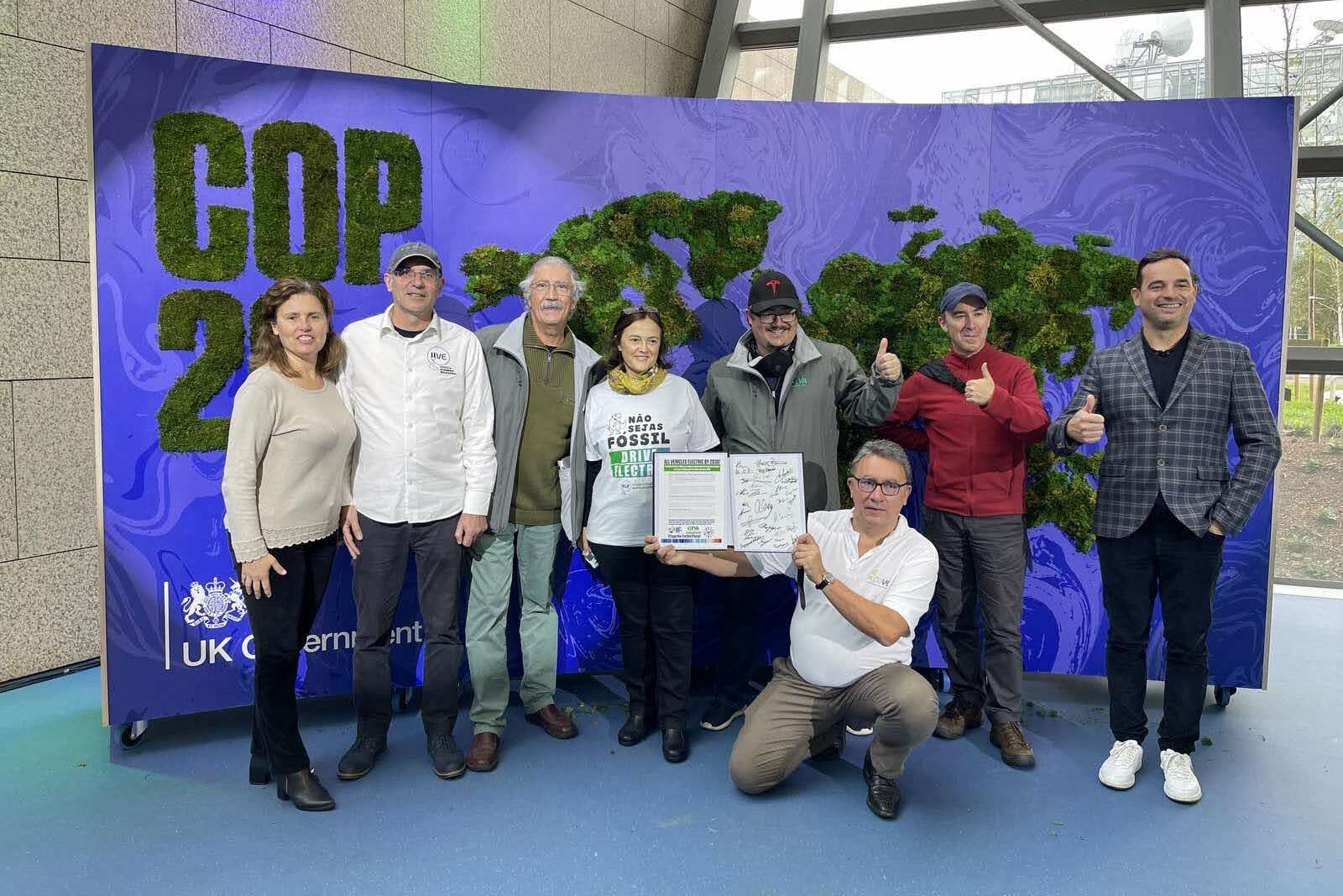Presença da UVE na COP26 em Glasgow, em outubro de 2021, para entrega de declaração conjunta com associações da Global EV Alliance (GEVA) para que seja aplicada proibição de venda de novos veículos a combustão a partir de 2035.