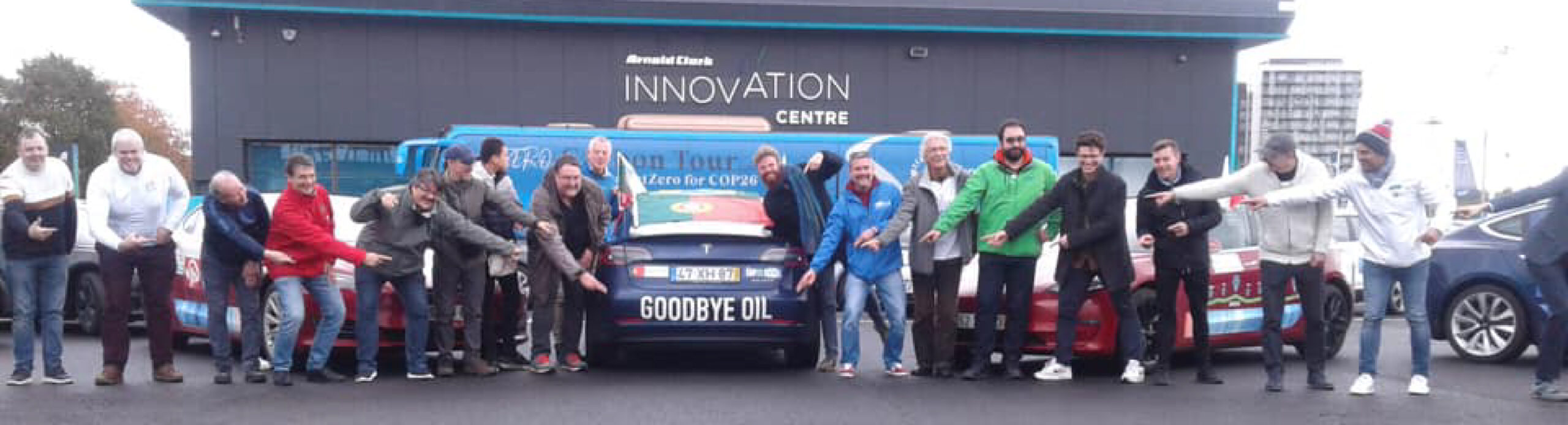 Viagem UVE até à COP26 em Glasgow, em outubro de 2021, com vários elementos das associações da Global EV Alliance (GEVA).