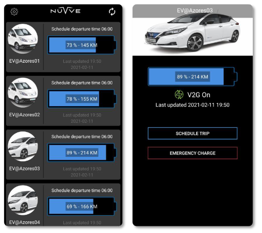 Os 10 veículos escolhidos foram da marca Nissan – modelos Leaf e e-NV200 -, em virtude de serem modelos com provas dadas na integração desta tecnologia que permite um comportamento bidirecional das suas baterias, isto é, permite que sejam carregadas e descarregadas através do mesmo cabo quando ligados aos equipamentos V2G.