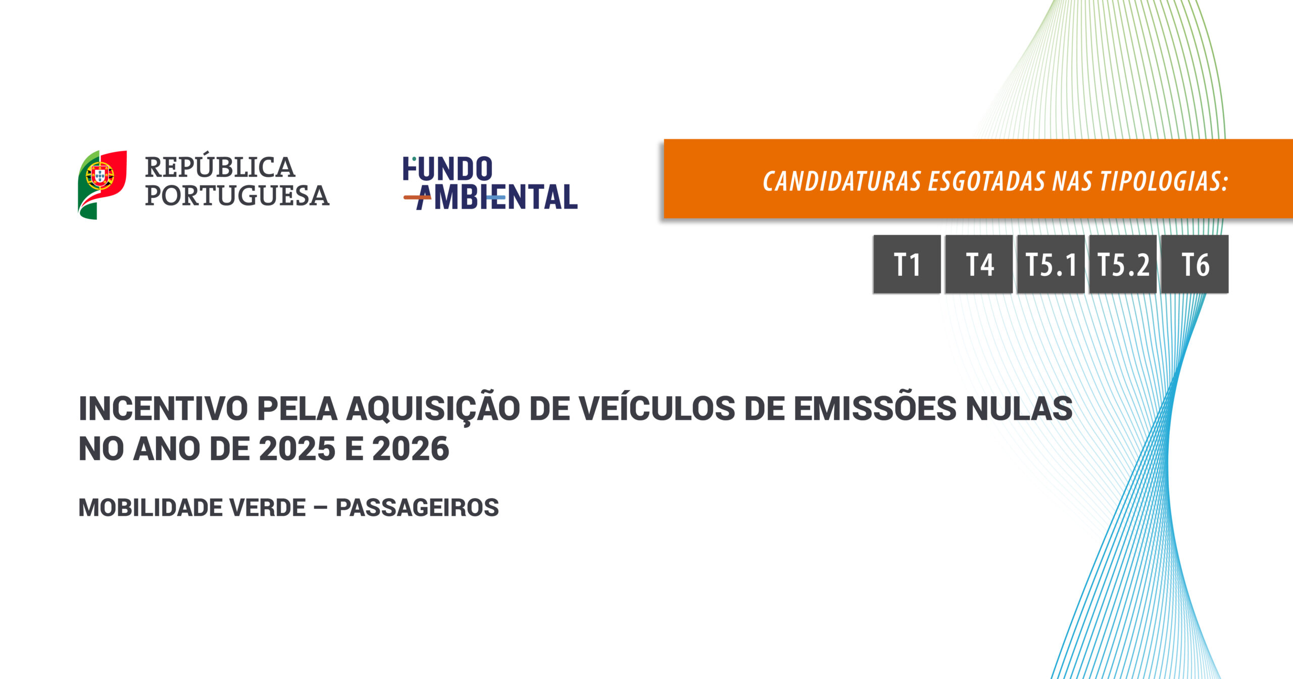 Foi publicado o Aviso de Abertura de Concurso (AAC) N.º 06 /2025, que inclui as regras gerais e requisitos por tipologia para atribuição do Incentivo pela Introdução no Consumo de Veículos de Emissões Nulas no Ano de 2025/2026 – Mobilidade Verde Passageiros. As condições e categorias deste incentivo descrevem-se neste artigo, e conta com a dotação global máxima de 17.625.000 €.