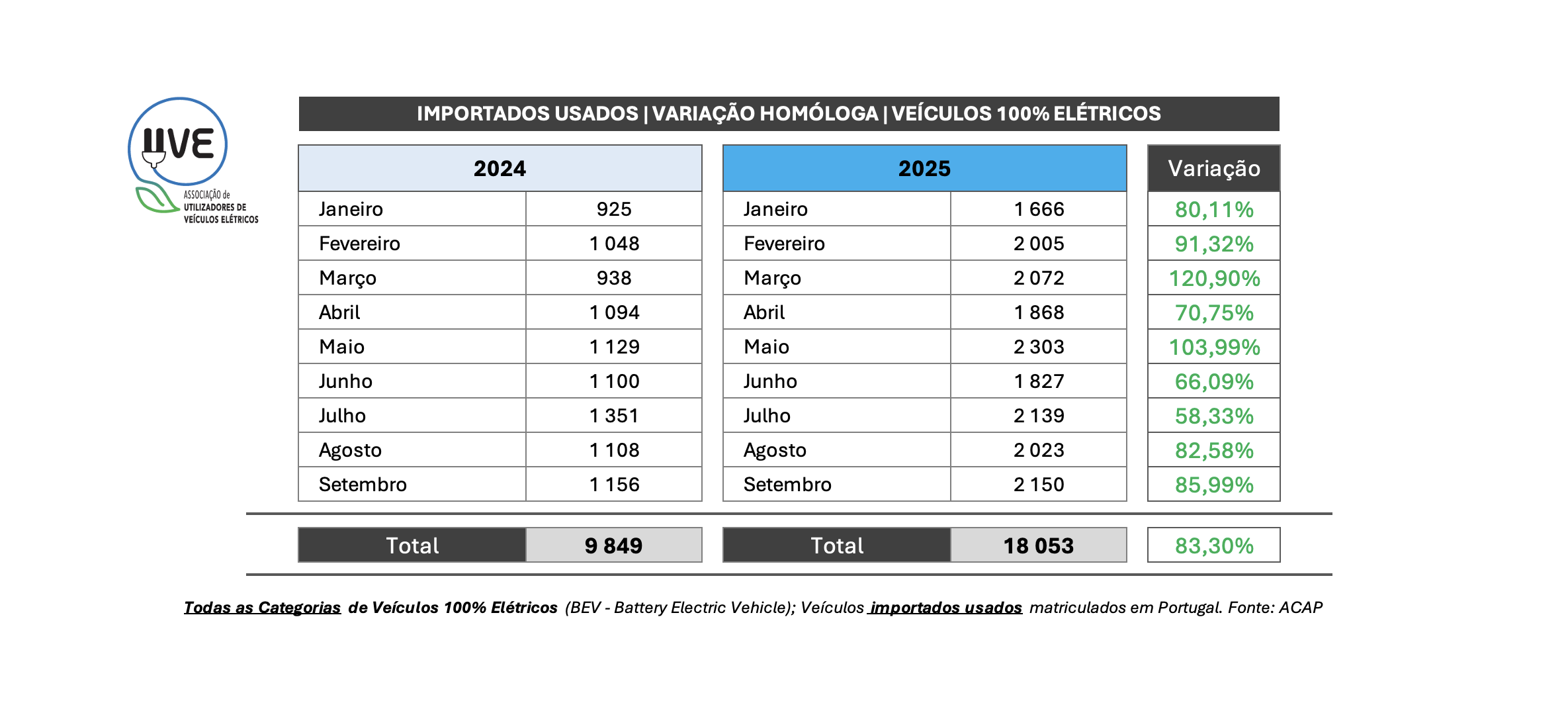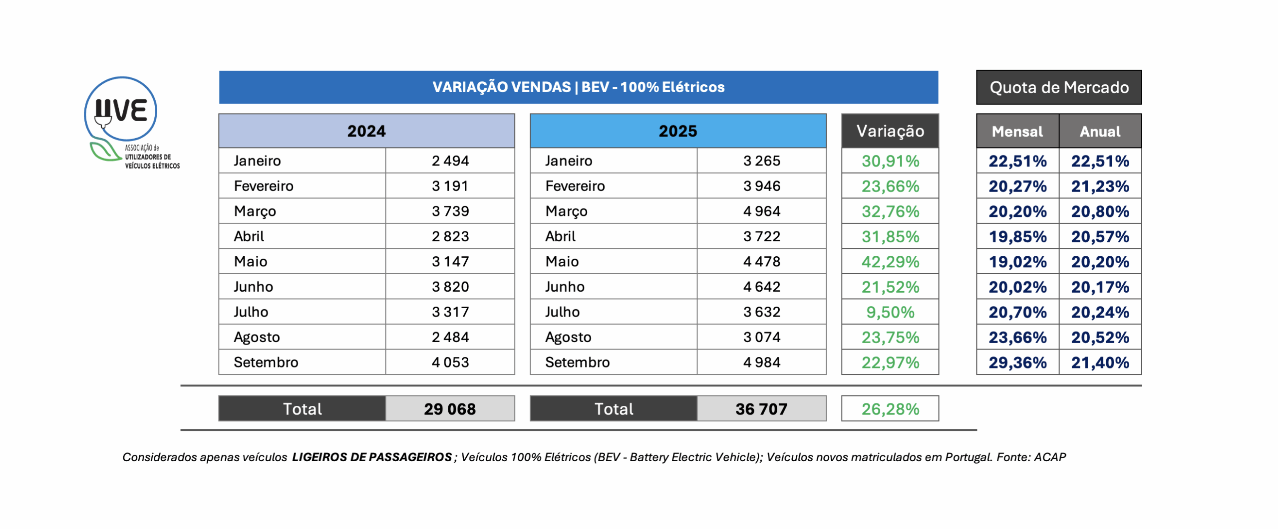 Setembro de 2025 assinala mais um marco histórico para a Mobilidade Elétrica em Portugal